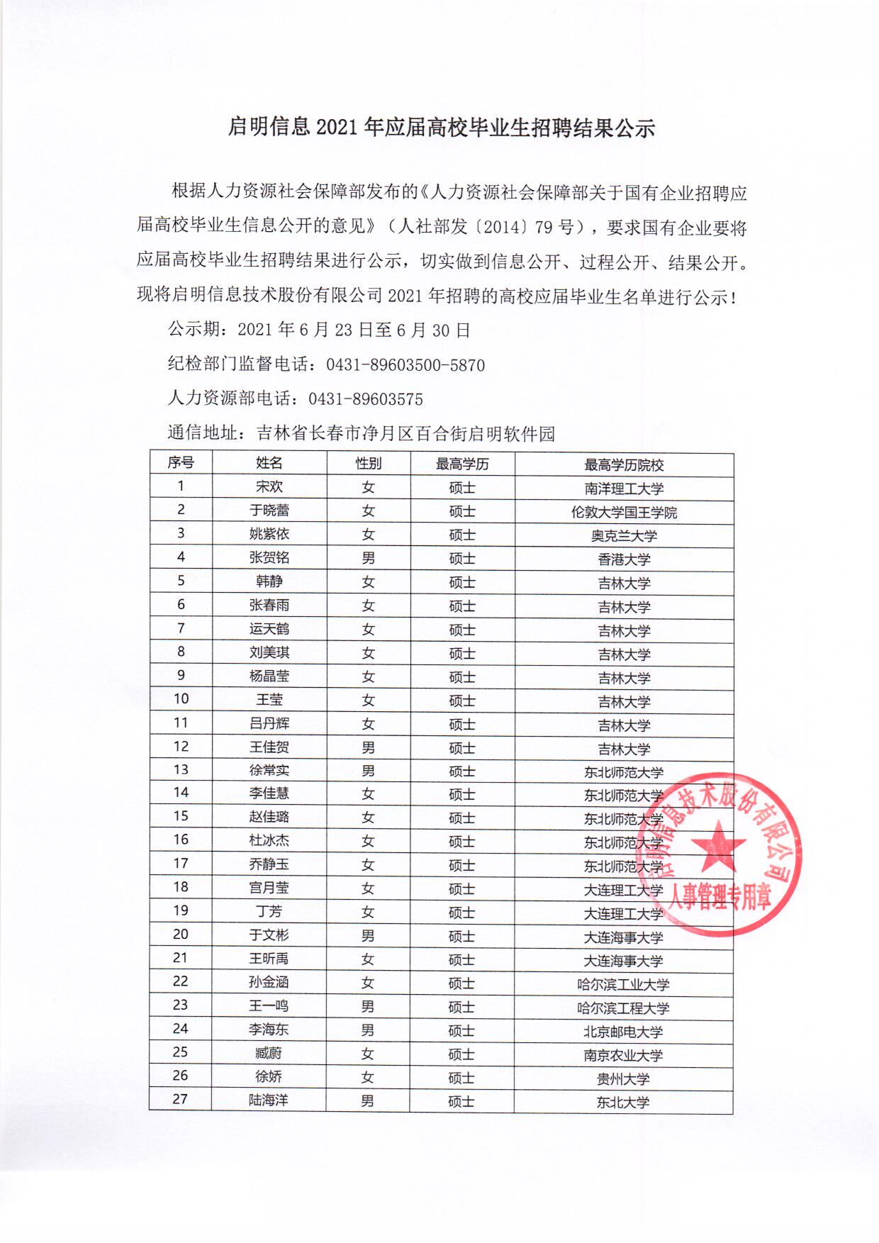 710公海寰宇信息2021年应届高校毕业生招聘结果公示