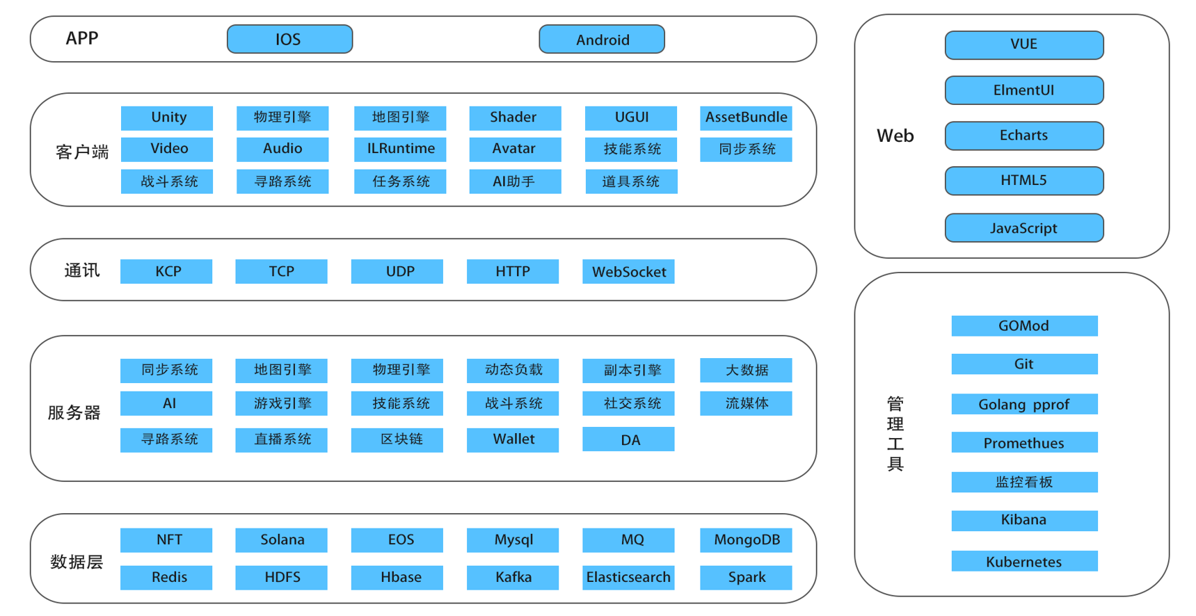 分区分配服务器,大世界大区域设置、支持跨区沟通,整体支持上亿级用户同时在线